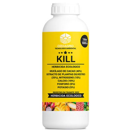 KILL es un bioherbicida, QUEMADOR DE MALEZA ECOLOGICO, es un producto de contacto no selectivo a base de mucilago de cacao, extractos vegetales y adicionalmente macronutrientes. Es amigable con el medio ambiente y controla todo tipo de maleza de hoja angosta y hoja ancha y musgos entre otro tipo de malezas que se dan en diversos cultivos.